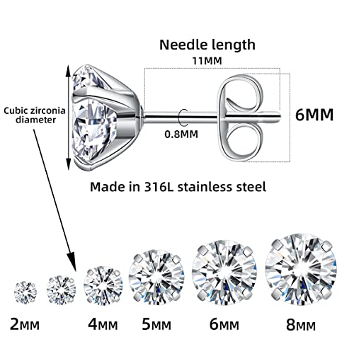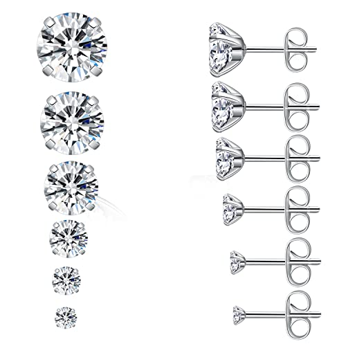 hujiling - مجموعة حلقان صغيرة بريمة مرصعة بالالماس من الستانلس ستيل عيار 316L، من 6 ازواج، للنساء والرجال، لا يسبب الحساسية، تصميم انيق كلاسيكي, ستانلس ستيل، من هوجيلينغ