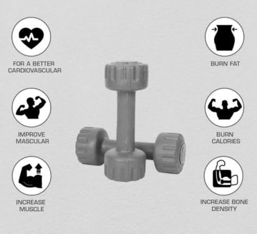 HULK - دامبل يدوي بتصميم ثابت من مادة بلاستيك بي في سي، لون رمادي، قطعتان بوزن 1 كجم لكل قطعة، إجمالي الوزن 2 كجم
