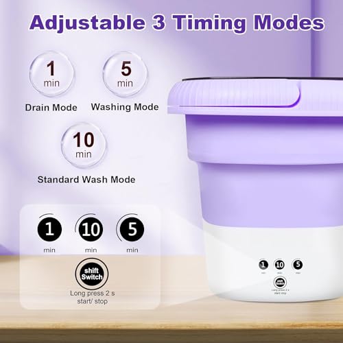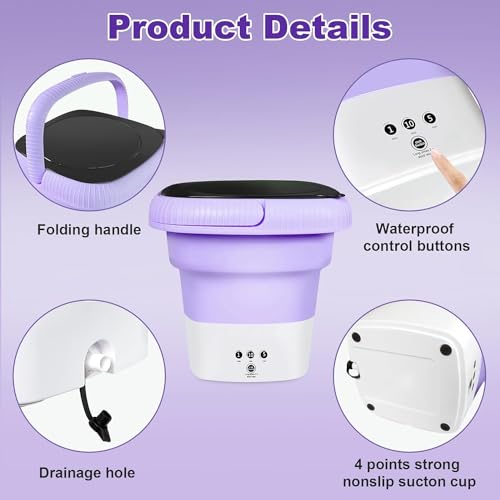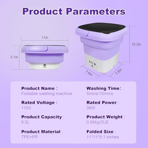 HULKNPEW - غسالة صغيرة قابلة للطي بسعة 6.5 لتر مع 3 أوضاع للتنظيف العميق والتجفيف بالدوران، سهلة الحمل ومناسبة للشقق والمساكن والتخييم والسيارة الترفيهية والسفر والفنادق من HULKNPEW، أرجواني