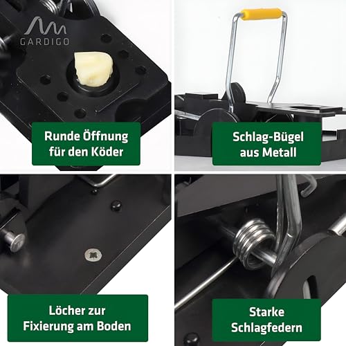 - مصنوعة من أقواس معدنية عالية الجودة وبلاستيك عالي الجودة، مما يضمن أن يكون كهف الفئران صلبًا وقابل لإعادة الاستخدام. يمكن لآلية الزناد الحساسة حل أمراض الفئران بسرعة وفعالية وتوفير تأثيرات فعالة للفئران.