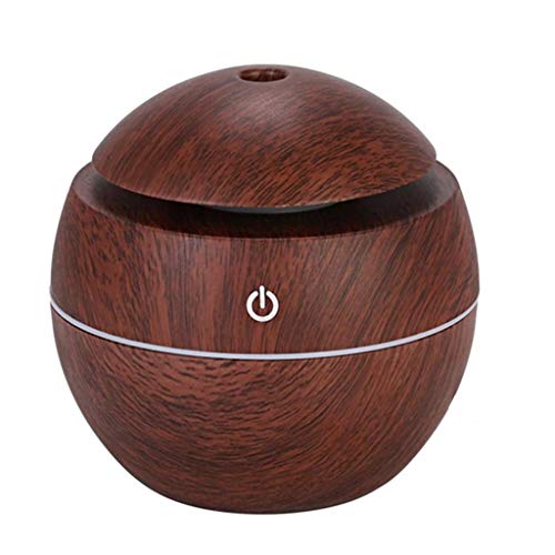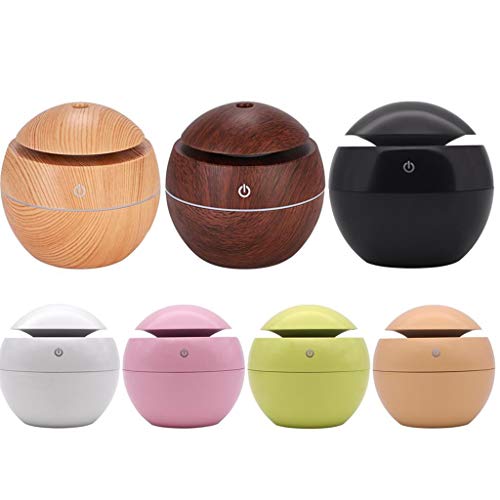 GYF - جهاز تعديل الرطوبة بالعلاج العطري، 130 مل، برذاذ بارد، USB، و7 اضواء LED، بالموجات فوق الصوتية، مناسب لسطح المكتب والسيارة وغرفة النوم والمكتب والسفر (الخشب الحبيبي مع بي