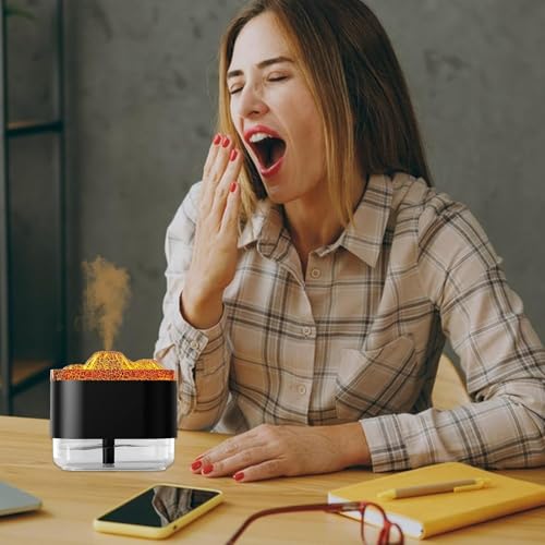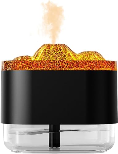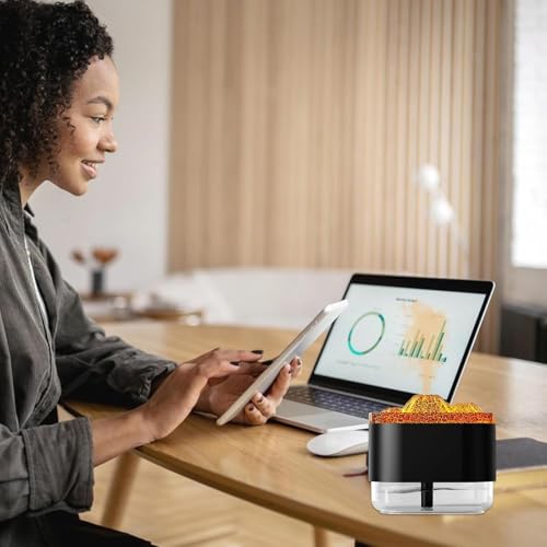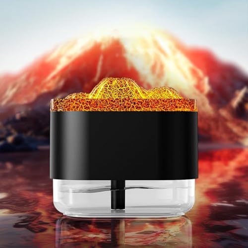 Generic - جهاز ترطيب الهواء بتصميم بركان لهب بوضعين للرش وإضاءة أجواء 8 ساعات مع إيقاف تلقائي للسبا والمنزل والمكتب وغرفة النوم والاسترخاء، 300 مل، أسود