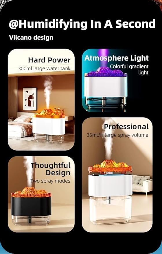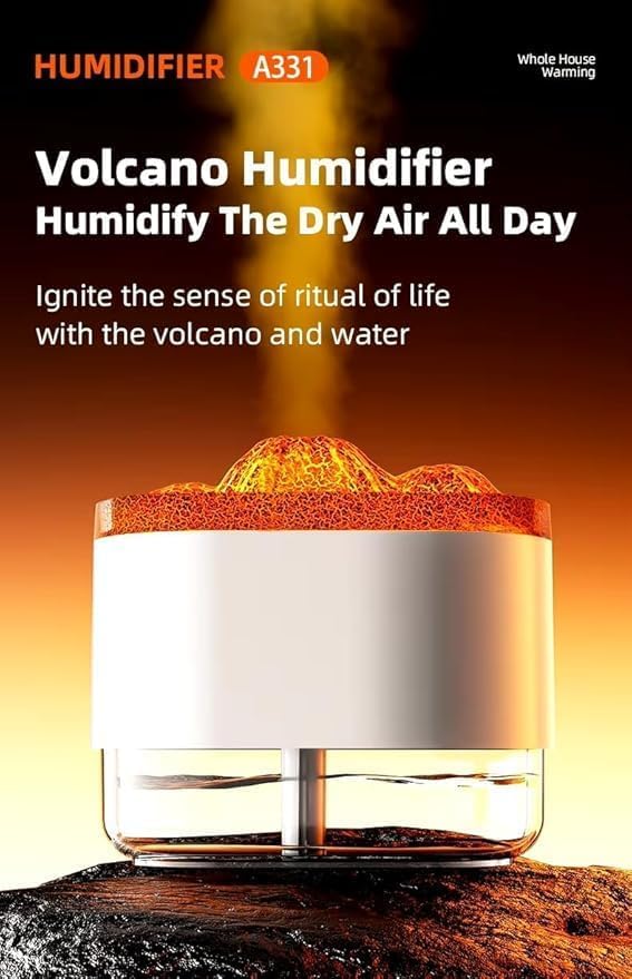 - مزايا التصميم: جهاز ترطيب فريد على شكل بركان مع تأثير لهب واقعي يخلق جوًا آسرًا في أي غرفة.