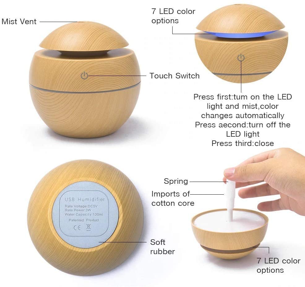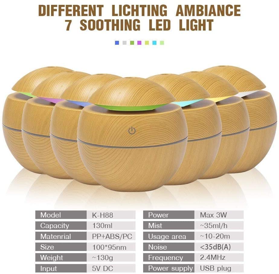 Spaceshoop - مرطب فواح صغير بروائح رائعة بالموجات فوق الصوتية يضيء بـ 7 الوان - خشبي فاتح
