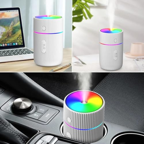 Generic - جهاز ترطيب محمول فائق الهدوء بالموجات فوق الصوتية للمنزل والمكتب والسيارة مزود بمصباح ليد ليلي بـ7 ألوان - 220 مل، لون أخضر