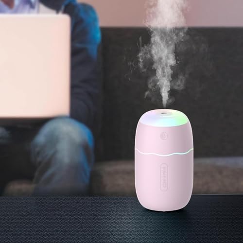 Generic - مرطب هواء محمول فائق الهدوء يعمل بالموجات فوق الصوتية للسيارة والمكتب وغرفة النوم ومصباح ليلي LED - 280 مل، بينك