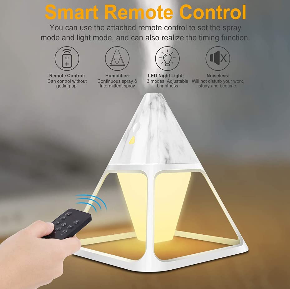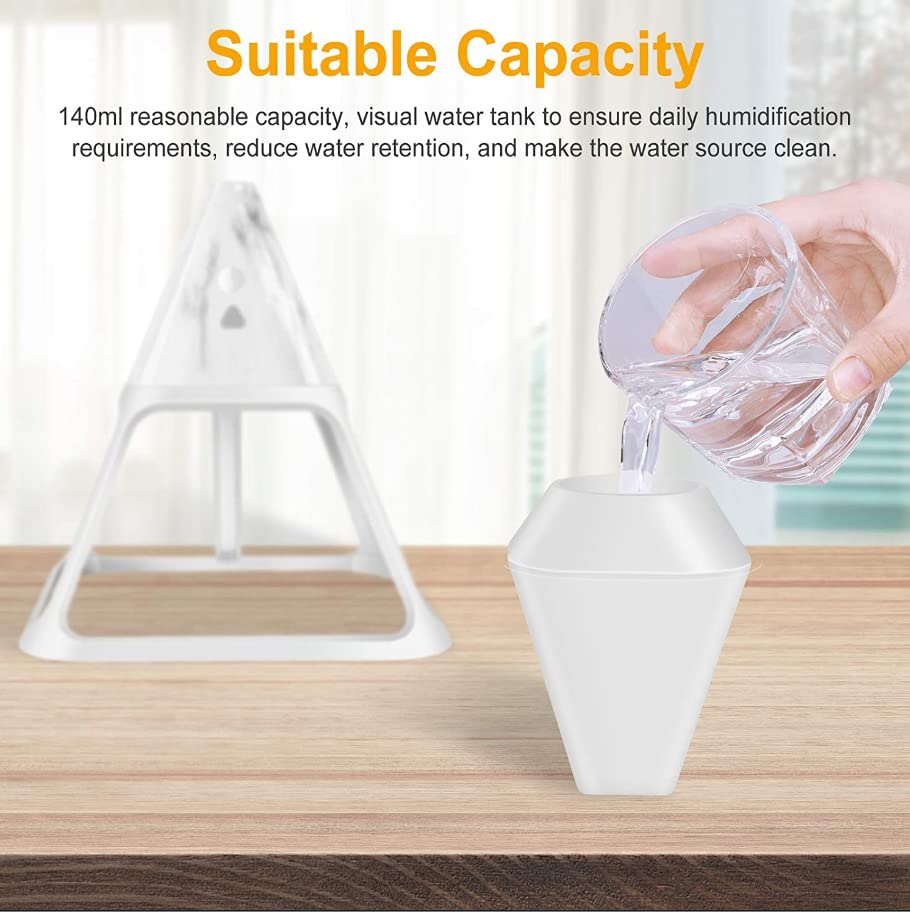 Generic - مرطب هواء هرمي بالموجات فوق الصوتية صامت بـ3 الوان باضاءة LED ليلية صغيرة لسطح المكتب 140 مل للاطفال والرضع والنباتات والمنزل - جهاز تحكم عن بعد