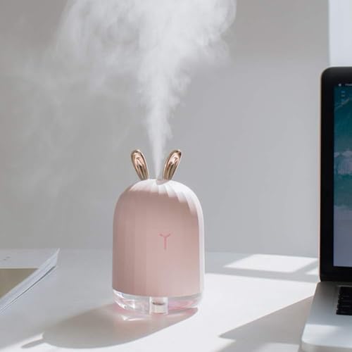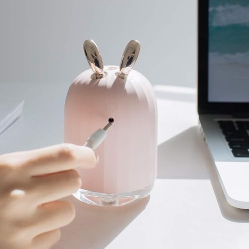 - جهاز ترطيب هواء صغير الحجم بتصميم أرنب مع إضاءة متغيرة مناسب لغرفة النوم والمنزل والمكتب وسطح المكتب سعة 220 ملليلتر مع خاصية إيقاف التشغيل التلقائي مسبقة الضبط