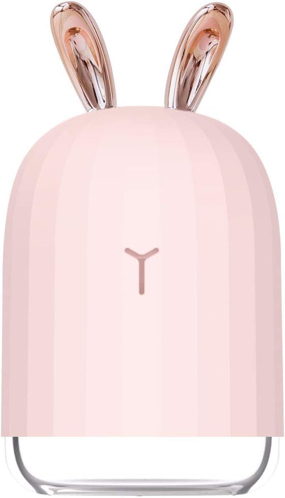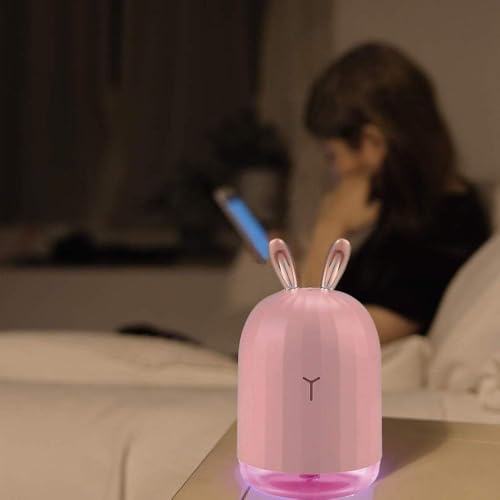 Spaceshoop - جهاز ترطيب هواء صغير الحجم بتصميم أرنب مع إضاءة متغيرة مناسب لغرفة النوم والمنزل والمكتب وسطح المكتب سعة 220 ملليلتر مع خاصية إيقاف التشغيل التلقائي مسبقة الضبط - (متعدد الألوان)