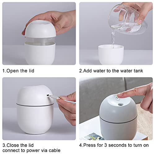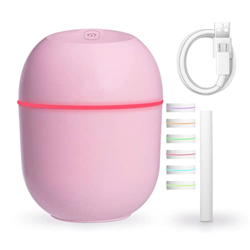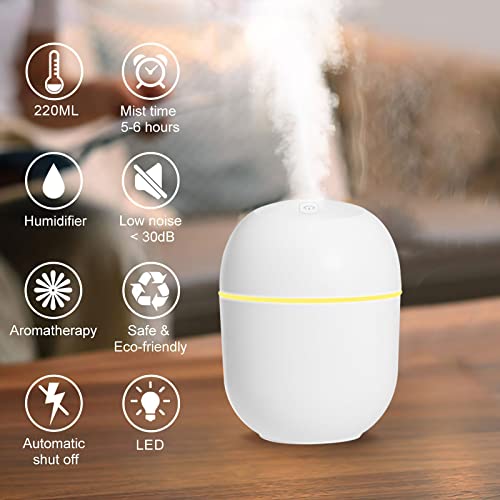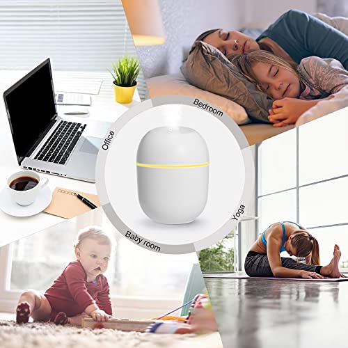 ERNITERTY - جهاز ترطيب هواء صغير فائق الهدوء برذاذ بارد بوضعي تشغيل ومنفذ USB يعمل حتى 10 ساعات مع 7 اضواء ملونة، بخاصية الاغلاق التلقائي، لغرفة نوم الطفل والسيارة والمكتب والنباتات والسفر، قطن