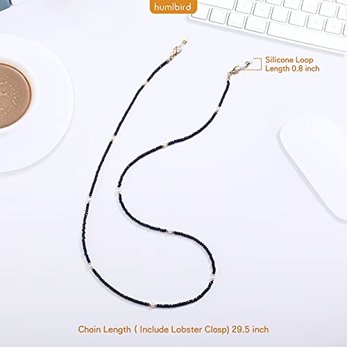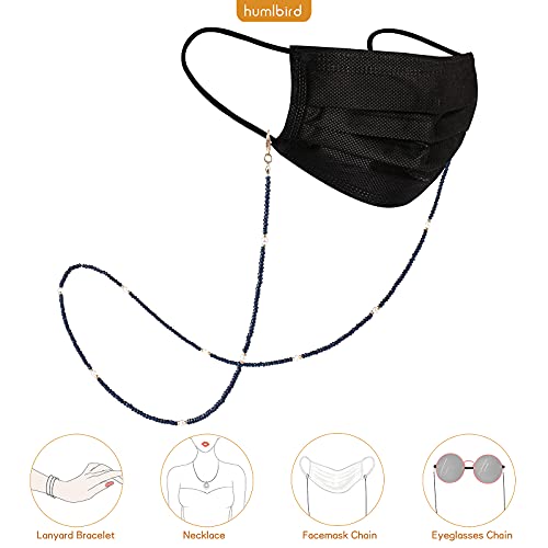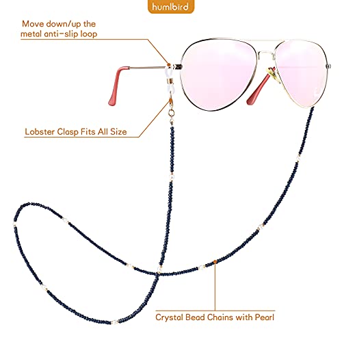 humlbird - حبل قصير للكمامة والنظارة للنساء من هاملبيرد، سلسلة نظارة شمس من الكريستال علاجية مزينة بالخرز مع اللؤلؤ