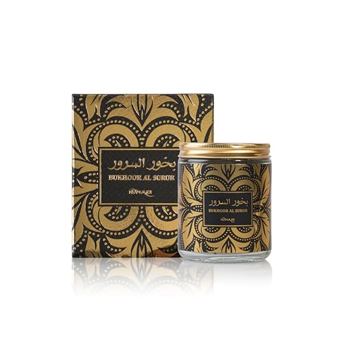 - عطر ساحر: يتميز بخور السرور بمزيج مبهج من الزهور وزهر البرتقال والروائح البلسمية، مما يخلق رائحة منعشة ومُبهجة.