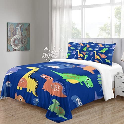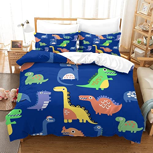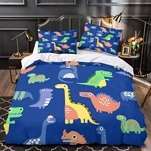 Hundnsney - طقم غطاء لحاف للأطفال بنمط حيوانات ما قبل التاريخ بطباعة ديناصور ملونة، طقم أغطية سرير من 3 قطع من المايكروفايبر هدية عيد ميلاد للمراهقين، مزدوج (200 × 200 سم)، بوليستر، مطبوع بصور حيوانات، من هوندسني