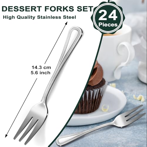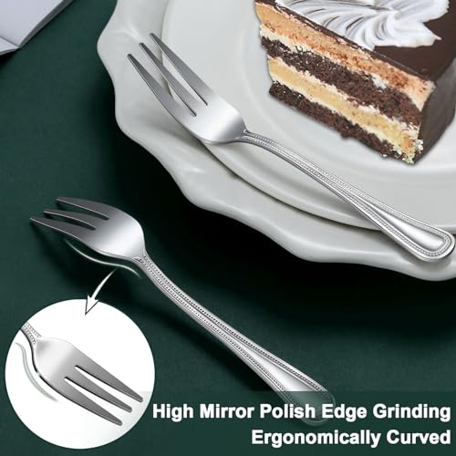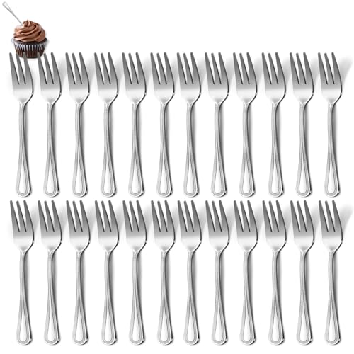 hunnycook - طقم شوك صغيرة للكيك والحلويات من الفولاذ المقاوم للصدأ من هوني كوك، شوك مصقولة للغاية ومناسبة للمنزل والمطاعم والحفلات الخارجية وآمنة للاستخدام في غسالة الصحون، مقاس (14.3 سم)، 24 قطعة