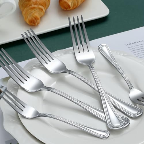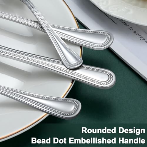 - تصميم كلاسيكي: تم تصميم شوك الكيك الخاصة بنا بشكل جميل مع تصميم مقبض على شكل دمعة ونمط نقاط لؤلؤي أنيق لا يتأثر بمرور الزمن يزين حافة المقبض مثل المجوهرات اللامعة. الشوكة ذات حواف خالية من النتوءات لن تخدش فمك. مع شوك الحلوى المصممة بدقة، يمكنك الاستمتاع بوجبتك مع جعل طاولتك أنيقة، هدية رائعة للعائلة والأصدقاء في الكريسماس وعيد الشكر.