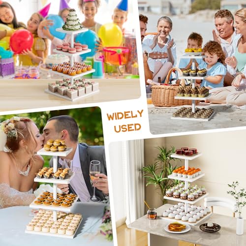 HURZMORO - حامل كب كيك خشبي مربع من 4 طبقات من هورزمورو لطاولة الحلوى وحفلات الشاي وأعياد الميلاد والزفاف وعرض الكب كيك، لون أبيض