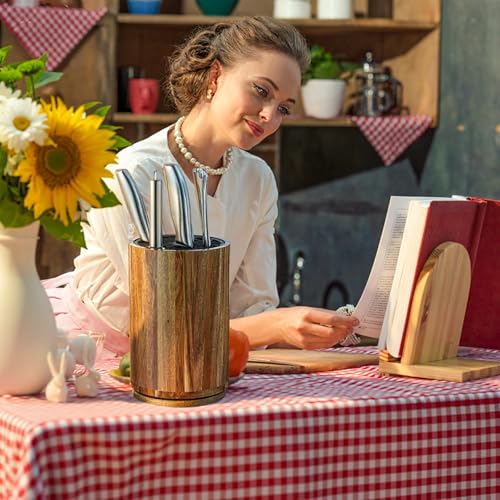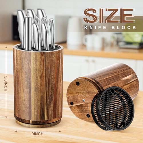 - تخزين أدوات المطبخ بسعة كبيرة: حامل السكاكين الخشبي هذا بتصميم أسطواني صغير (ارتفاع 9 انش × قطر 5.9 انش)، يتناسب حامل السكاكين هذا بشكل أنيق على أسطح الطاولات مع إضافة لمسة عصرية وبسيطة إلى نمط مطبخك