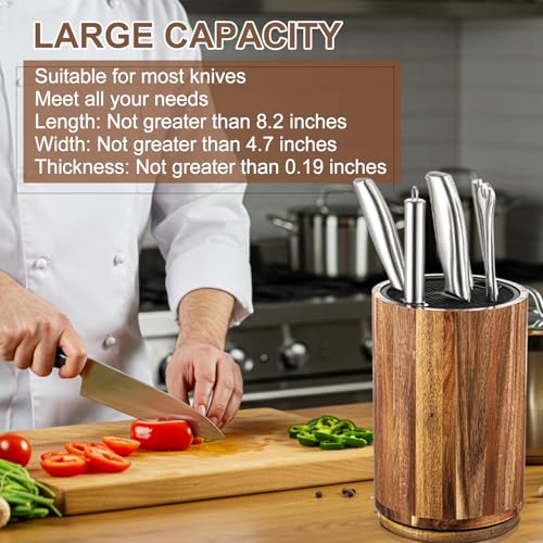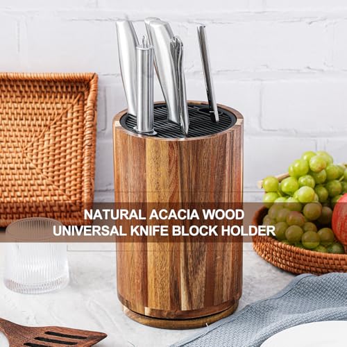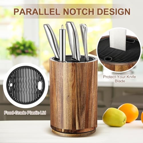 Hushee - هاشيه حامل سكاكين خشبي مع غطاء بلاستيكي، حامل تخزين ادوات المطبخ دوار 360 درجة، منظم لسطح الطاولة، سعة كبيرة، بدون سكاكين