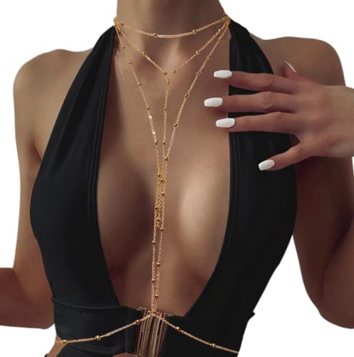HUSSATOP - سلسلة بيكيني ذهبية للجسم، مجوهرات ليلية بتصميم حزام جذاب للنساء والبنات من هيسا توب، لون ذهبي لامع، مقاس واحد, One Size, معدن غير ثمين, بدون أحجار كريمة