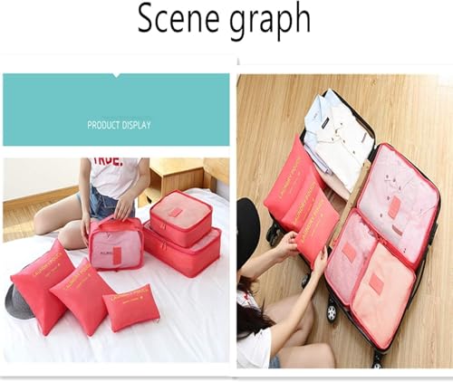 Generic - هيوفرلك - طقم منظم شنط السفر (تتوفر الألوان: بينك/أسود/كحلي) 🎒🌍 (6 قطع)✨ مساحة كبيرة لتنظيم شنطتك في السفر والرحلات. جربها الآن! - من جينيريك