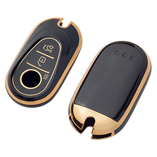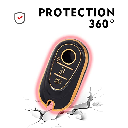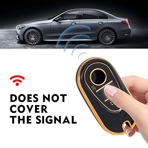 HUWANDJ - غطاء مفتاح فوب ذكي اسود من البولي يوريثين الحراري متوافق مع سيارة بنز 2020 2021 2022 اس كلاس جي كلاس اي كلاس اي كلاس 3 ازرار للتحكم عن بعد بدون مفتاح من هوانج