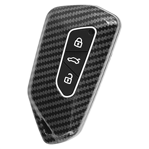 HUWANDJ - غطاء حماية لمفتاح السيارة الذكي من هواندج متوافق مع فولكس فاجن جولف 8 ID.3 ID.4 2020 سكودا اوكتافيا 3 ازرار للدخول بدون مفتاح عن بعد نمط الياف الكربون ABS بلاستيك سيليكون مطاط اسود