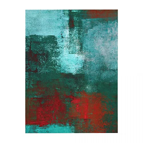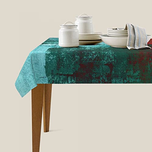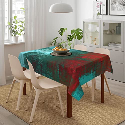 HUXJOKO - مفرش طاولة مستطيل من هوكسجوكو، لوحة فنية تجريدية باللون الفيروزي والاحمر، غطاء طاولة مقاوم للماء لديكور المنزل والعشاء والمطبخ وحفلات الزفاف والعطلات، 60 × 84 انش، البوليستر , 84 بوصة
