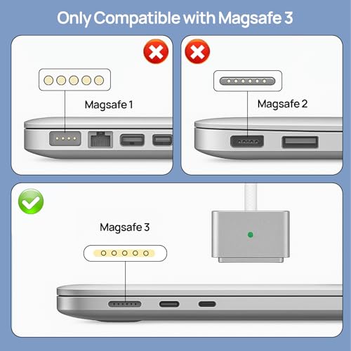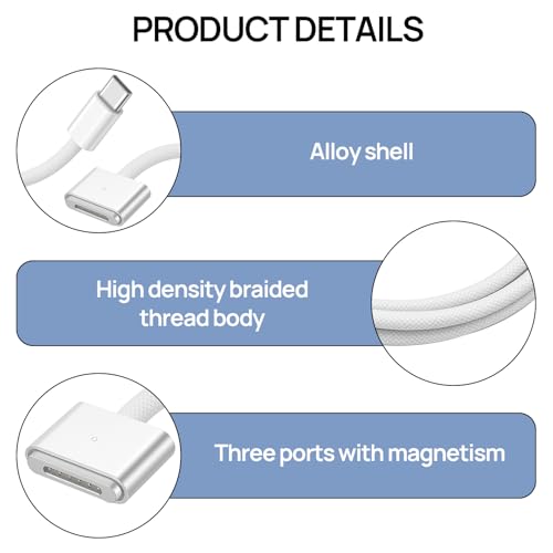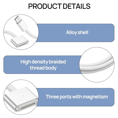 Huybaa - كيبل USB C الى Ma-gSafe 3 بقدرة 140 واط (2 متر)، كيبل ماك بوك اير/ برو، 140 واط PD نوع C الى Ma-gSafe 3 لشاحن 140/100/65 واط، شحن سريع متوافق مع ماك بوك اير 13 14 16 وماك بوك برو 13 14 16 من هويبا