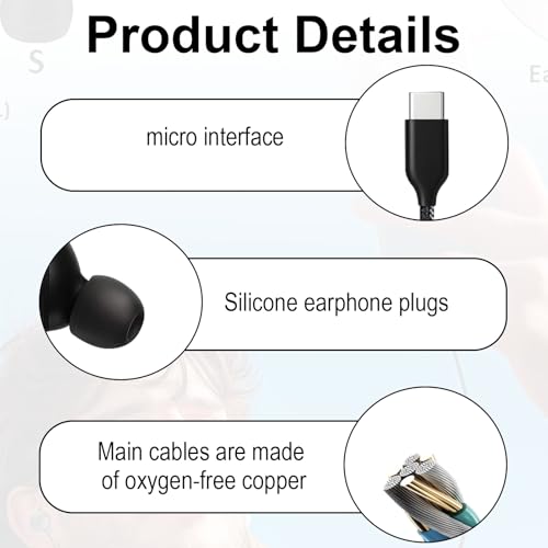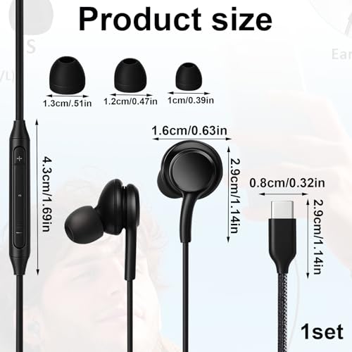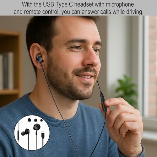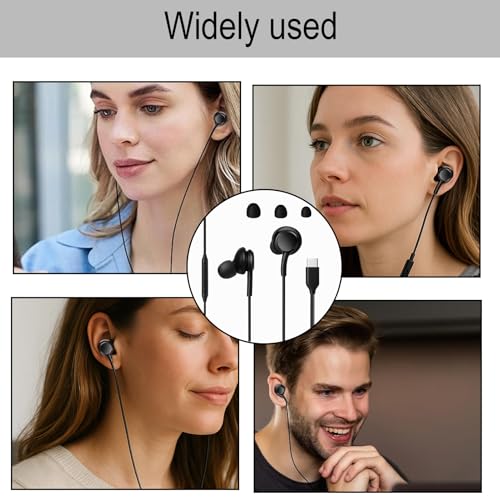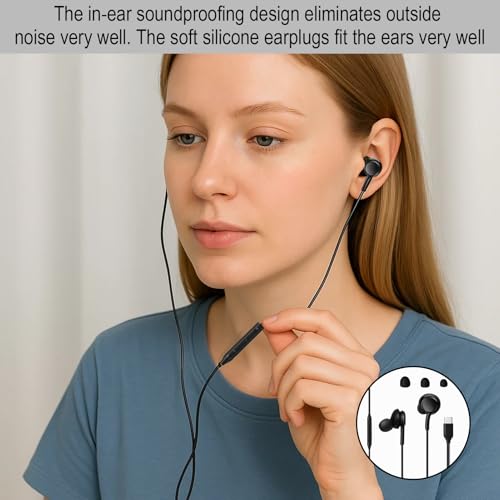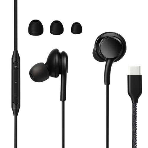 Huybaa - سماعات داخل الأذن بسلك USB نوع C، مع نظام صوت هاي فاي ستيريو مع ميكروفون، متوافقة مع S23 وS24 وS22 الترا وA55 وA35 وA53 وA33 وA54 شبكة الجيل الخامس 5G من هويبا