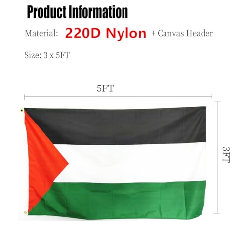 HVATLTL - اعلام فلسطين من اتش في ايه تي ال ال مقاس 3×5 قدم، علم نايلون 220D شديد التحمل، الوان زاهية، لافتات اعلام وطنية فلسطينية مع حلقتين نحاسيتين للاستخدام الداخلي والخارجي (فلسطين، 3×5)
