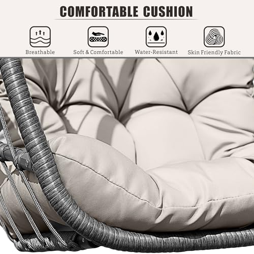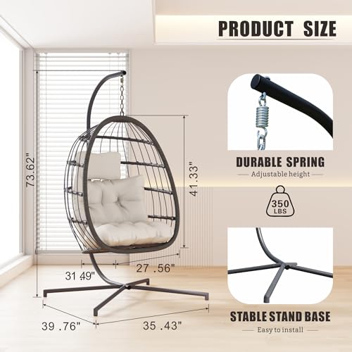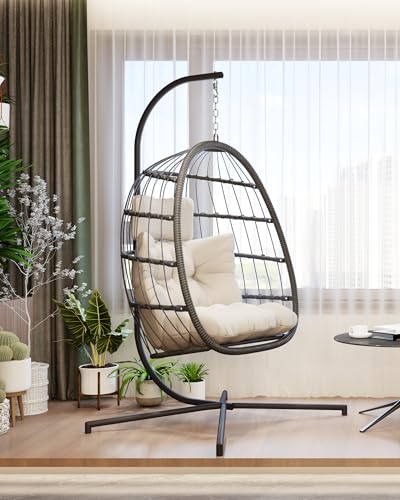 - 【مريح】كرسي البيض المعلق باللون الرمادي الداكن الخاص بنا مع حامل يعيد تعريف الراحة والأناقة، مما يوفر مقعدًا كبيرًا ومصمم هندسيًا لاسترخاء لا مثيل له. استرخ لفترات طويلة مع الوسادة السميكة ومسند الرأس.