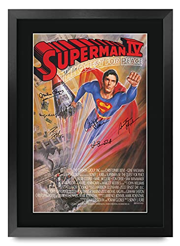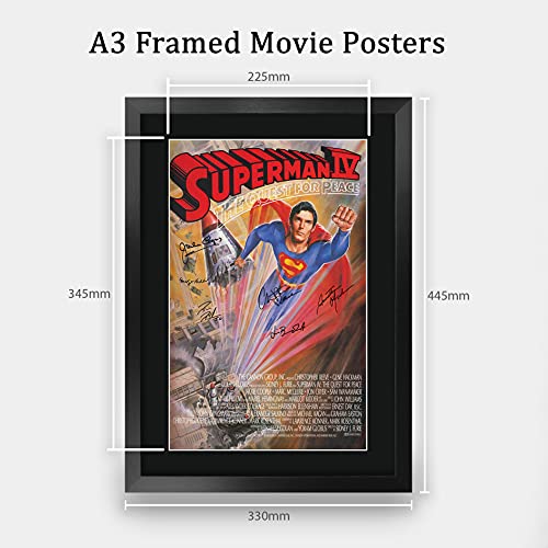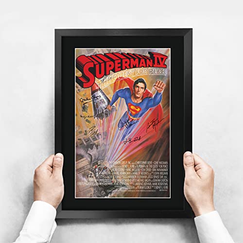 HWC Trading - بوستر بتصميم اوتوجراف مطبوع بتوقيع وصورة كريستوفر ريف من فيلم سوبرمان 4 اتش دبليو سي تريدينغ بإطار مقاس A3 لمحبي الأفلام وتذكارات السينما متعدد الألوان