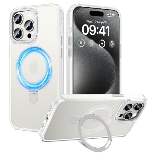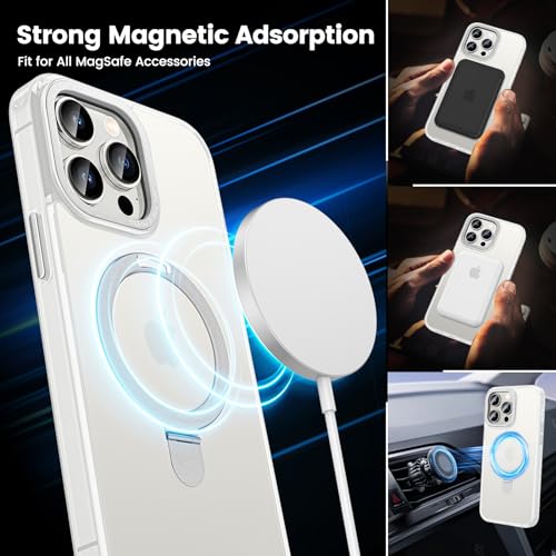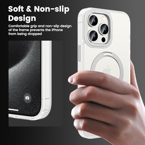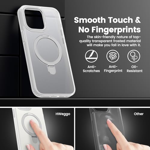 HWeggo - جراب مغناطيسي لموبايل ايفون 15 برو من اتش دبليو اي جي جو متوافق مع ماج سيف حماية السقوط الدرجة العسكرية غطاء جوال شفاف غير لامع قابل للانزلاق حامل مرئي 6.1 معدن