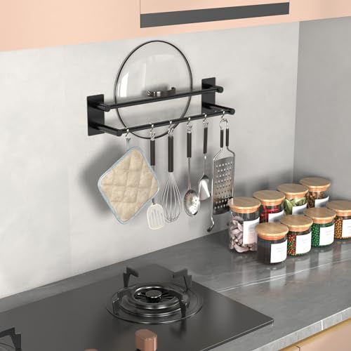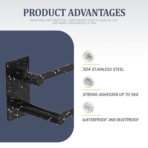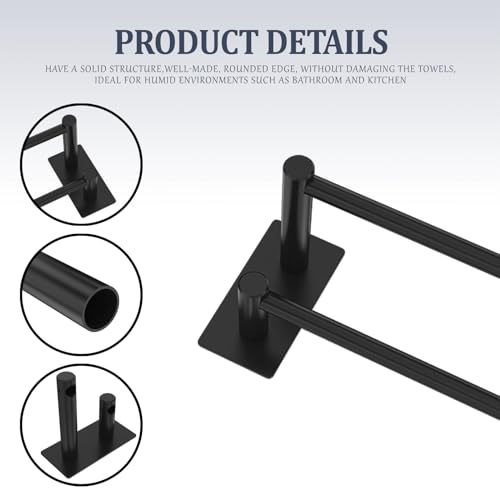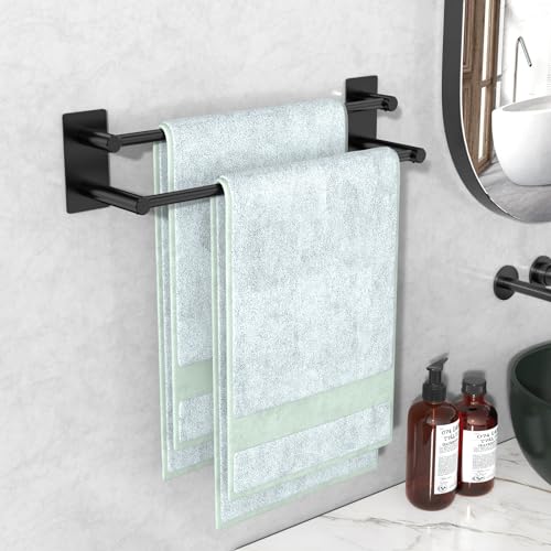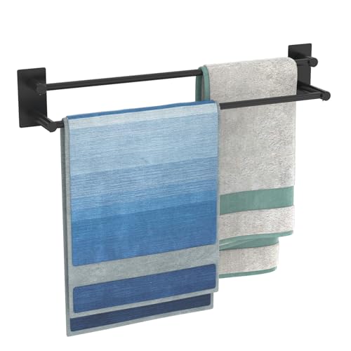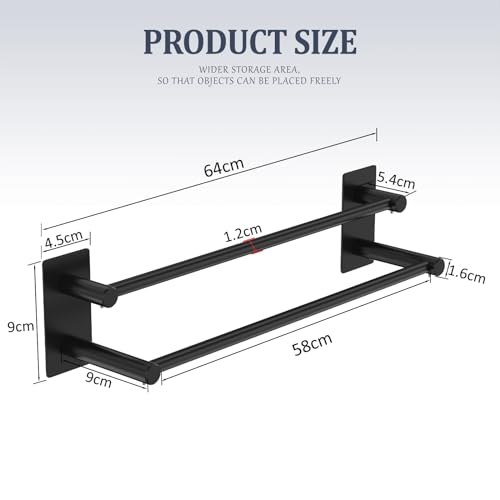 Hwyxcx - حامل مناشف ذاتي اللصق من اتش دبليو واي اكس سي اكس، بدون ثقب، حامل مناشف للتثبيت على الحائط، ستانلس ستيل SUS304، حامل منشفة مزدوج مصقول، للحمام والمطبخ (60 سم، اسود)