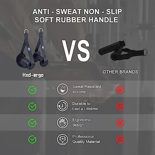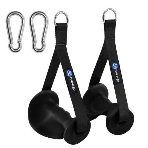 HXD-ERGO - مقابض آلة الكابلات من اتش اكس دي-ايرجو، مقابض تمارين مريحة شديدة التحمل لتمارين البيلاتس واليوجا وتمارين القوة والسحب لأسفل، مقابض مقاومة للتمارين الرياضية مع مشبكين بحلقة تثبيت
