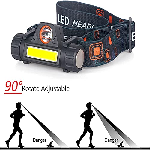 HXDream - كشاف امامي LED قابل لاعادة الشحن بمنفذ USB بضوء كاشف بدرجة قابلة للتعديل من اتش اكس دريم، مناسب للتخييم والمشي لمسافات طويلة والجري في الاماكن المفتوحة