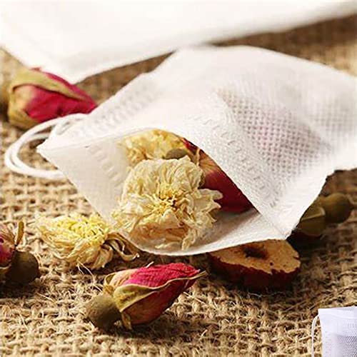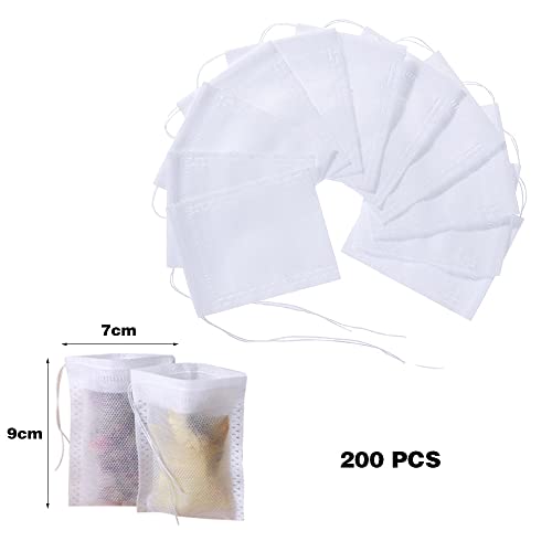 Generic - عبوة من 200 كيس شاي فارغ للاستعمال مرة واحدة مع رباط سحب لأوراق الشاي السائبة ومسحوق الشاي والأعشاب من اتش اكس اتش دبليو كين، أبيض، 9 × 7 سم