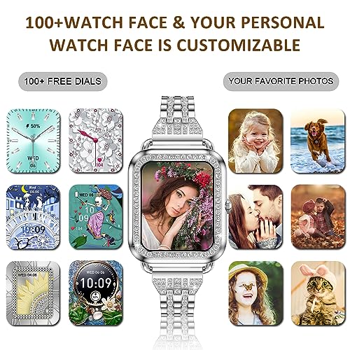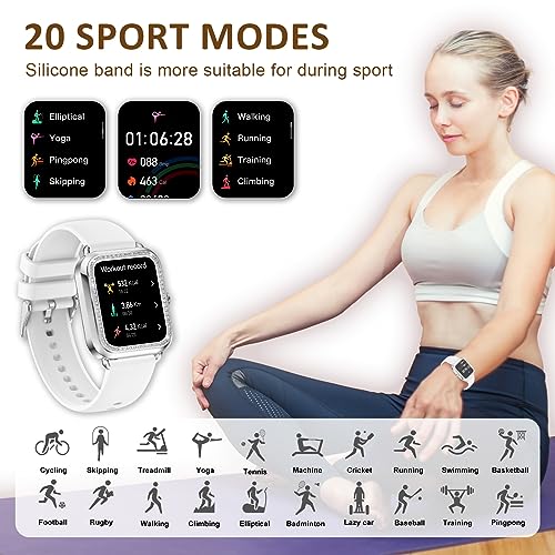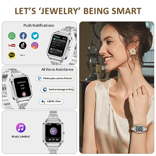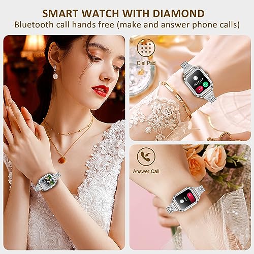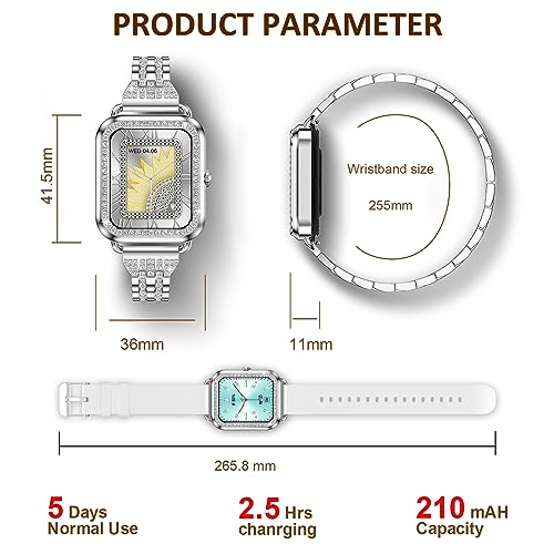 - 🎁【ساعة ذكية رفيعة مرصعة بالماس بتصميم أنيق】تتميز هذه الساعة الذكية للنساء بتصميم أنيق مرصع بالألماس الذي سيجعلك مميزة عن الآخرين، كما تأتي ساعة النساء مع سوار أبيض بديل من السيليكون، وهي مثالية اللواتي يرغبن في تغيير مظهرهم أو من يحتاجون إلى ملاءمة أكثر راحة أثناء التمرين أو التدريب.