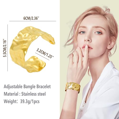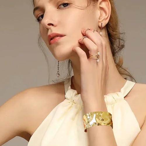 Hyacinthy - سوار عريض للنساء من هياسينثي، سوار حلقي علوي مطلي قابل للتعديل ومفتوح، اساور معصم قابلة للتكديس للنساء، من خليط معدني من الستيل، لا