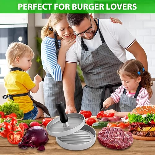 Generic - أداة صنع هايبرجر للشواء - طباعة هامبارجر من الألومنيوم غير اللاصق لصنع فطائر مثالية ولحم البقر والخضروات وبرجر الدجاج في المنزل