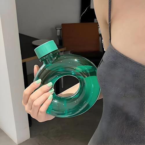 Generic - زجاجة ترطيب - زجاجة مياه بلاستيكية قابلة لاعادة الاستخدام على شكل دونات سعة 500 مل بتصميم مريح فريد، مثالية للمدرسة وصالة الالعاب الرياضية والاستخدام الخارجي، خفيفة الوزن ومتوفرة بالوان نابضة بالحياة