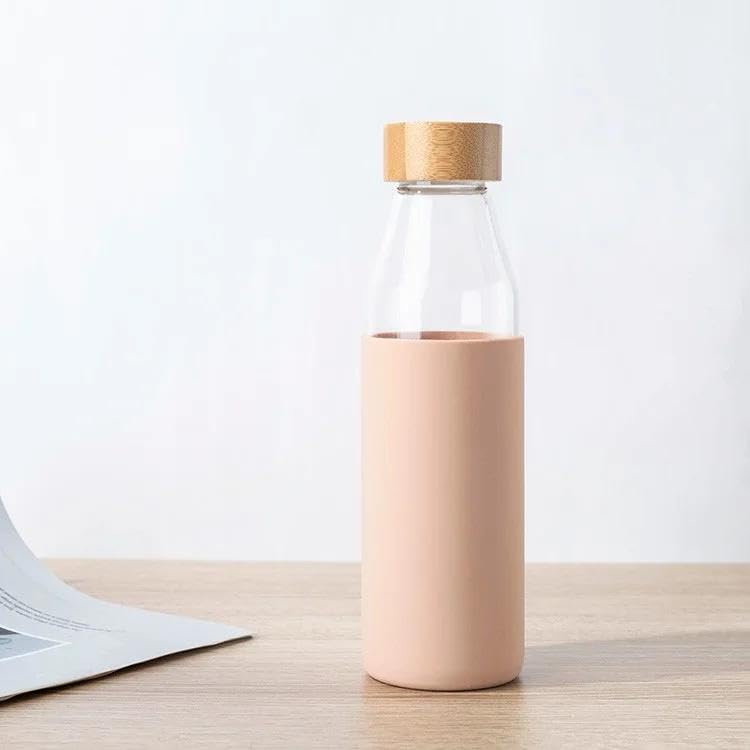 Generic - زجاجة مياه صديقة للبيئة بغطاء من الخيزران وغطاء سيليكون واقي، تصميم قابل لإعادة التدوير للمنزل والمكتب وصالة الألعاب الرياضية والسفر وتخزين الثلاجة، 500 مل، ألوان متعددة