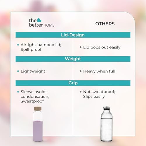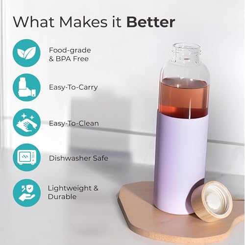 - توفر زجاجة المياه المصنوعة من زجاج البورسليكات الفاخرة هذه تجربة شرب أكثر صحة لأنها خالية تمامًا من المواد الكيميائية الضارة، ومقاومة للصدأ، ومصممة لكل من البالغين والأطفال. على عكس الزجاجات البلاستيكية العادية، فإنها تضمن السلامة والمتانة والاستدامة، مما يجعلها خيارًا موثوقًا للترطيب اليومي في المنزل أو المكتب أو الجيم أو أثناء السفر.