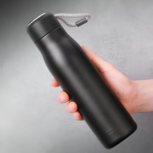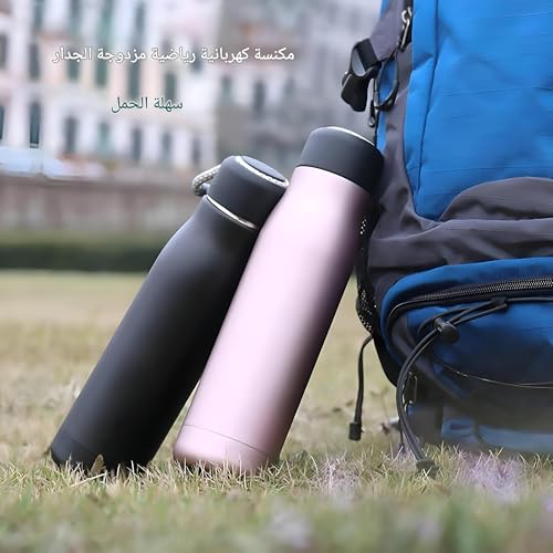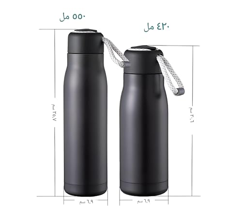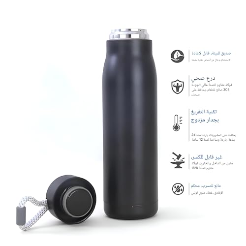Generic - قارورة ترطيب - تصميم أنيق وعملي من الستانلس ستيل مع عزل مفرغ، تتميز بفتحة واسعة وحبل عملي لسهولة الحمل، مثالية لأنماط الحياة النشطة
