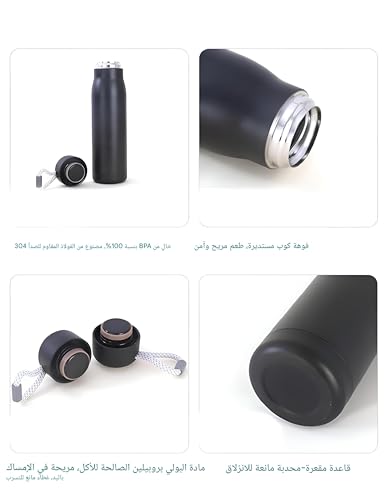 - زجاجة المياه المصنوعة من الستانلس ستيل هذه متوفرة بلمسة نهائية سوداء أنيقة، تتميز بتقنية عزل الفراغ مزدوجة الجدار تحافظ على المشروبات باردة لمدة تصل إلى 24 ساعة وساخنة لمدة تصل إلى 12 ساعة. لا مزيد من القلق بشأن التكثيف من الخارج؛ ستستمتع بالراحة والراحة دون أن يتسرب أي عرق. يسمح تصميم الفم العريض بسهولة الملء والصب والتنظيف، مما يجعله مثاليًا للاستخدام اليومي والأنشطة الخارجية. يحمل 17 اونصة، مما يوفر ترطيبًا وافيًا من خلاله