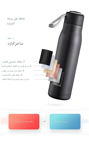 - مصنوعة من الستانلس ستيل 18/8 الآمن غذائيًا، هذه الزجاجة خالية من البيسفينول ايه وصديقة للبيئة، مما يضمن أن تجربة الشرب الخاصة بك آمنة وموثوقة. إنها متينة ومقاومة للصدأ والتسرب، مما يجعلها الخيار الأمثل للأنشطة الرياضية أو المدرسة أو العمل أو أي سيناريو يومي. تضمن المواد الخالية من الرصاص بقاء مشروبك نقيًا وخاليًا من أي مواد كيميائية ضارة. يمكنك حملها بثقة مع العلم أنها تلبي المعايير العالية للصحة والسلامة.