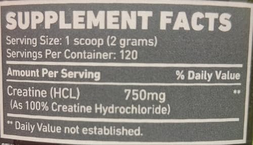 NutraNova Labs - مكمل غذائي هيدرو اتش سي ال كرياتين بهيدروكلوريد الكرياتين سريع الامتصاص، تركيبة القوة والتحمل والتعافي، 240 جم، 120 حصة