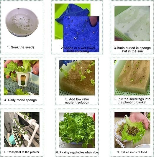 Generic - مجموعة الزراعة المائية 36 موقعًا و4 انابيب ، نظام زراعة مائية مع مضخة مياه، مؤقت مضخة للخضروات الورقية والخس والاعشاب والكرفس والملفوف