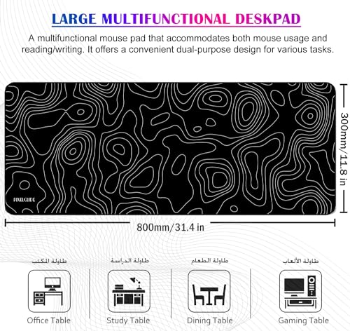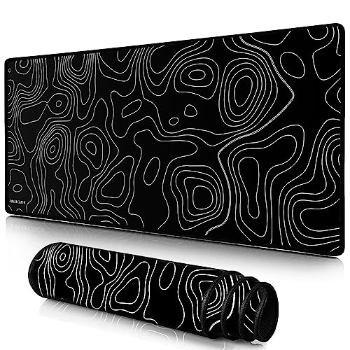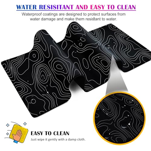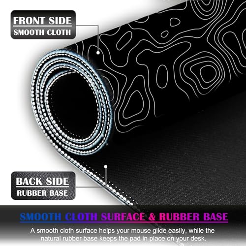 TYCTIX - قاعدة ماوس كبيرة للألعاب توبوجرافيك بحواف مخيطة وتصميم ممتد بسطح قماشي ممتاز وقاعدة مطاطية غير قابلة للانزلاق كيبورد مقاومة للماء لون أسود وأبيض من هايجين لايف