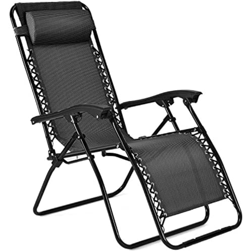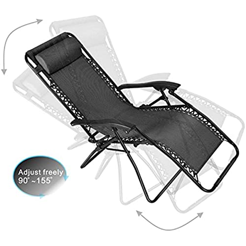 HYMCX - كرسي زيرو جرافيتي من اتش واي ام سي اكس قابل للطي مع مسند للأرجل ومخدة قابلة للتعديل خارجي مضاد للجاذبية يستخدم للفناء والشاطئ والتخييم والحديقة وحمام السباحة وسطح الحديقة أسود سبيكة صلب